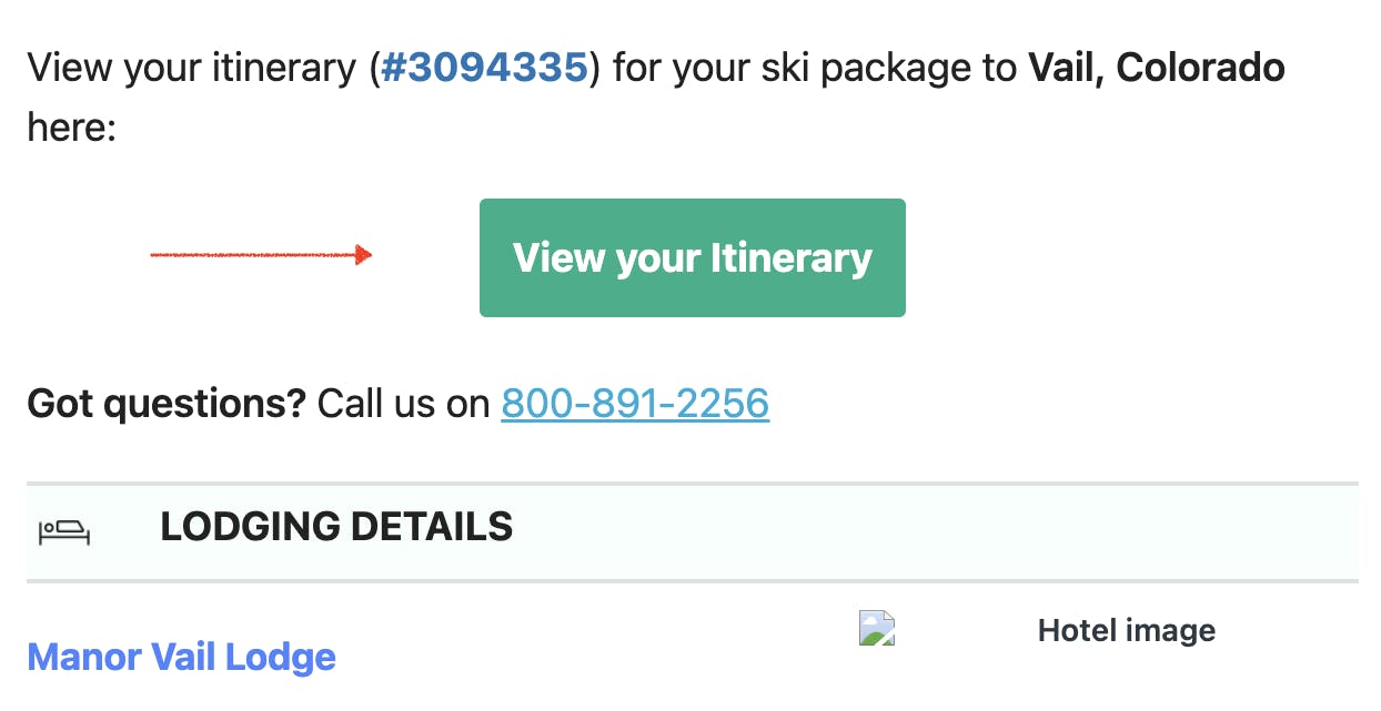 Also, in your confirmation email there is a "See your Itinerary" button which will take you to your Itinerary page. Please note that your confirmation email may take a few minutes to be delivered to your inbox after booking.